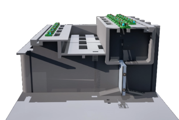 在十二圩闸站工程中,集团彩运网首次将BIM技术与全息投影技术相结合,实现了工程设计和展示的全面升级。利用BIM技术生产高清三维模型,包括水工结构图、机电及辅机设备图、节点图、施工做法层次图、运行工况模拟等工艺节点细节图,结合全息投影技术,利用光的干涉和衍射原理记录并再现物体真实三维图像,让一张平面图纸瞬间立体展现在眼前,达到360度无死角观察到工程每个节点的细节。同时借助投影设备将三维画面悬浮在实景的半空中成像,能够模拟出物体的真实深度、纹理和光影效果,使得投影出的影像仿佛真的存在于观众眼前,在完全没有束缚的情况下就可以观看裸眼3D幻影立体显示特效营造的亦幻亦真的氛围,效果奇特具有强烈的纵深感、科技感、空间感、透视感,即使一个完全不懂水利工程图纸的人也能直观感受施工效果,同时观众可以通过各种方式与投影出的虚拟影像进行互动,如触摸、语音控制等,这种互动性大大增强了观众的参与感和沉浸感。